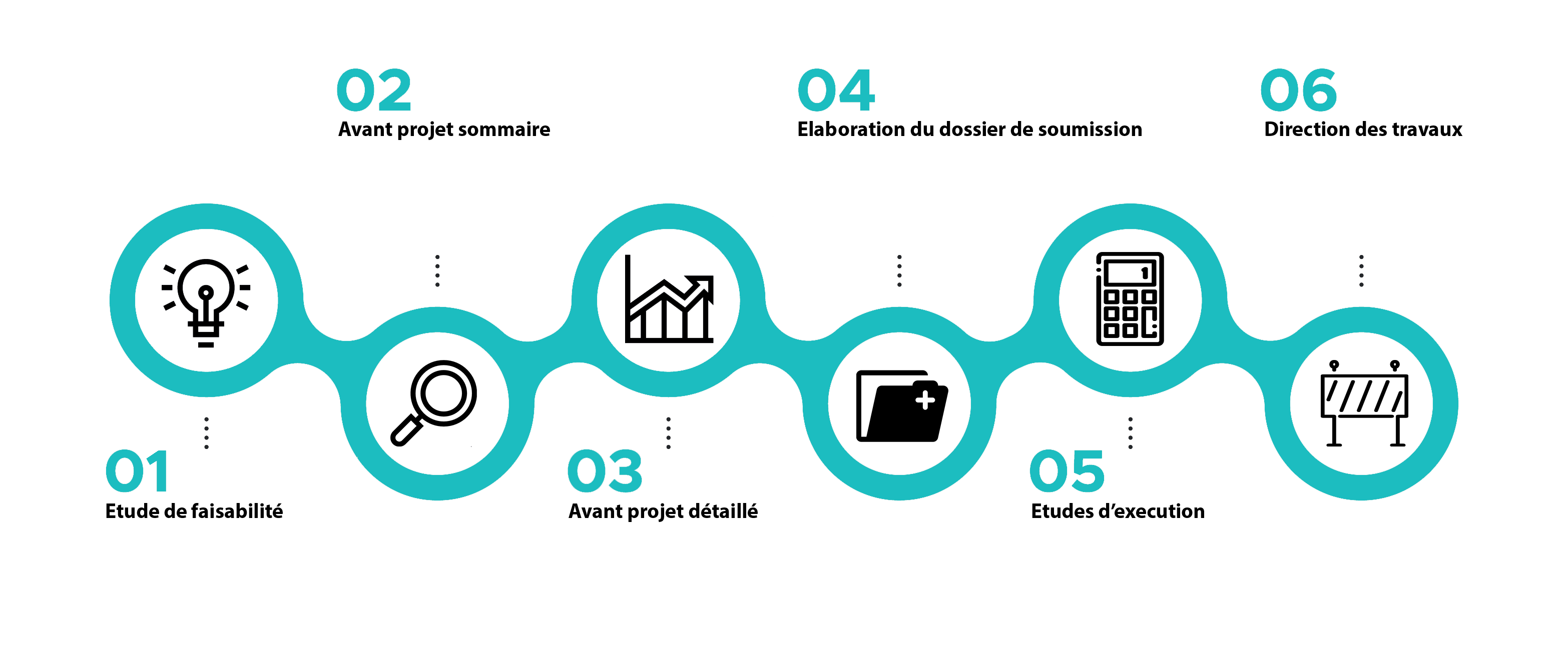 Nos missions d’études couvrent toutes les phases de conception et de réalisation d’un projet à savoir la réalisation de :
